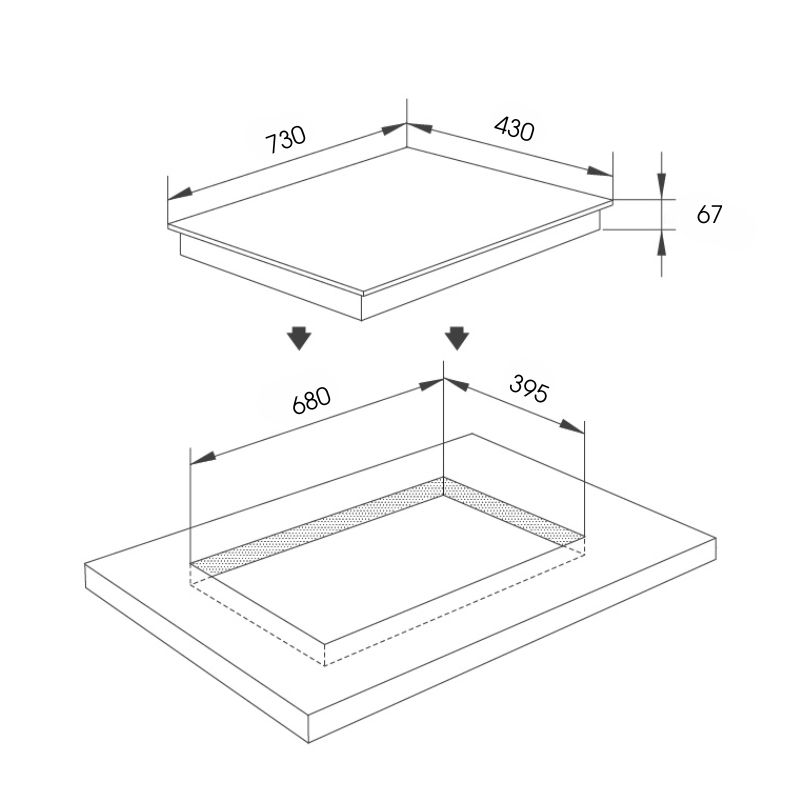 - Trang bị 2 vùng nấu rộng rãi với bề ngang 73cm, tối ưu cho diện tích bếp mà vẫn đảm bảo không gian nấu nướng thoải mái